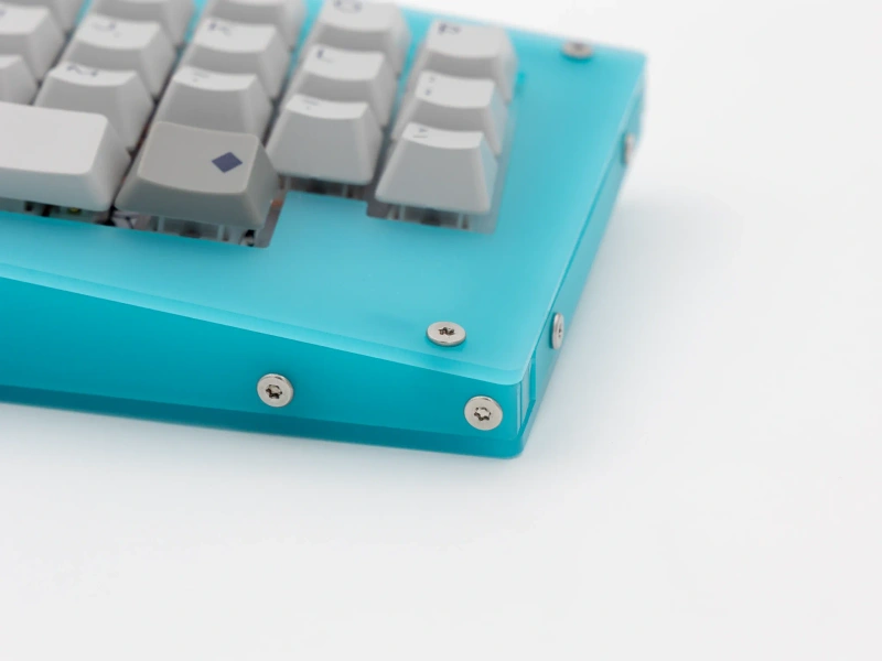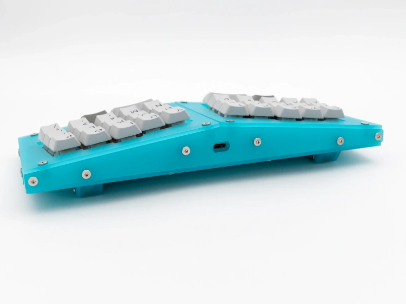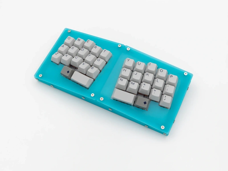 A polycarbonate plate, silicone gasket socks and a 34/36-key hotswap PCB with multiple layouts create a soft, customisable typing experience. The ProMicro footprint daughterboard supports a wide range of controllers, including wireless options, and features a dedicated battery slot built into the case.